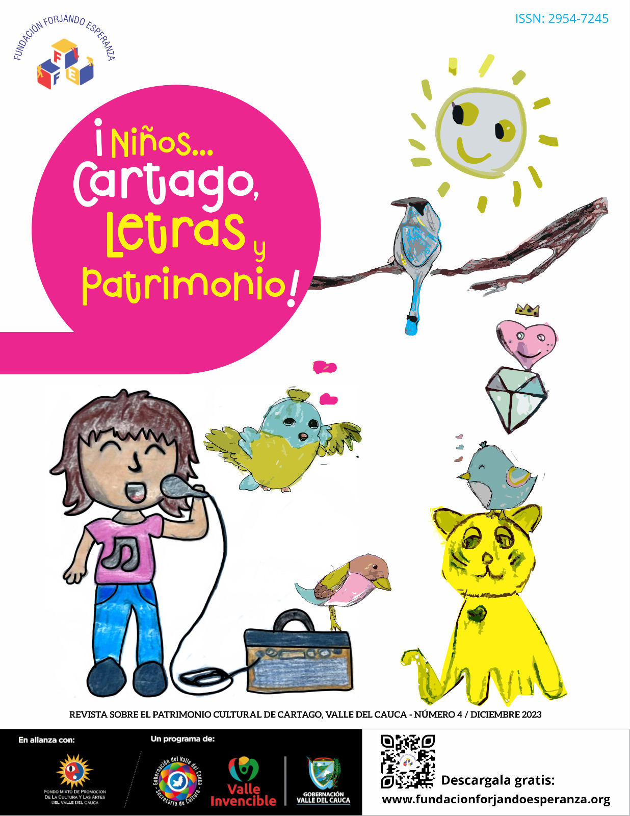 Llenos de alegría y motivación les presentamos la revista ¡Niños... Cartago, Letras y Patrimonio No 4!, la cual es un sueño hecho realidad gracias a un grupo de niños maravillosos llenos de talentos entre 6 y 12 años del municipio de Cartago. Descubre todas sus capacidades , y las valiosas enseñanzas plasmadas en sus artículos. ¡Esta revista es fascinante!